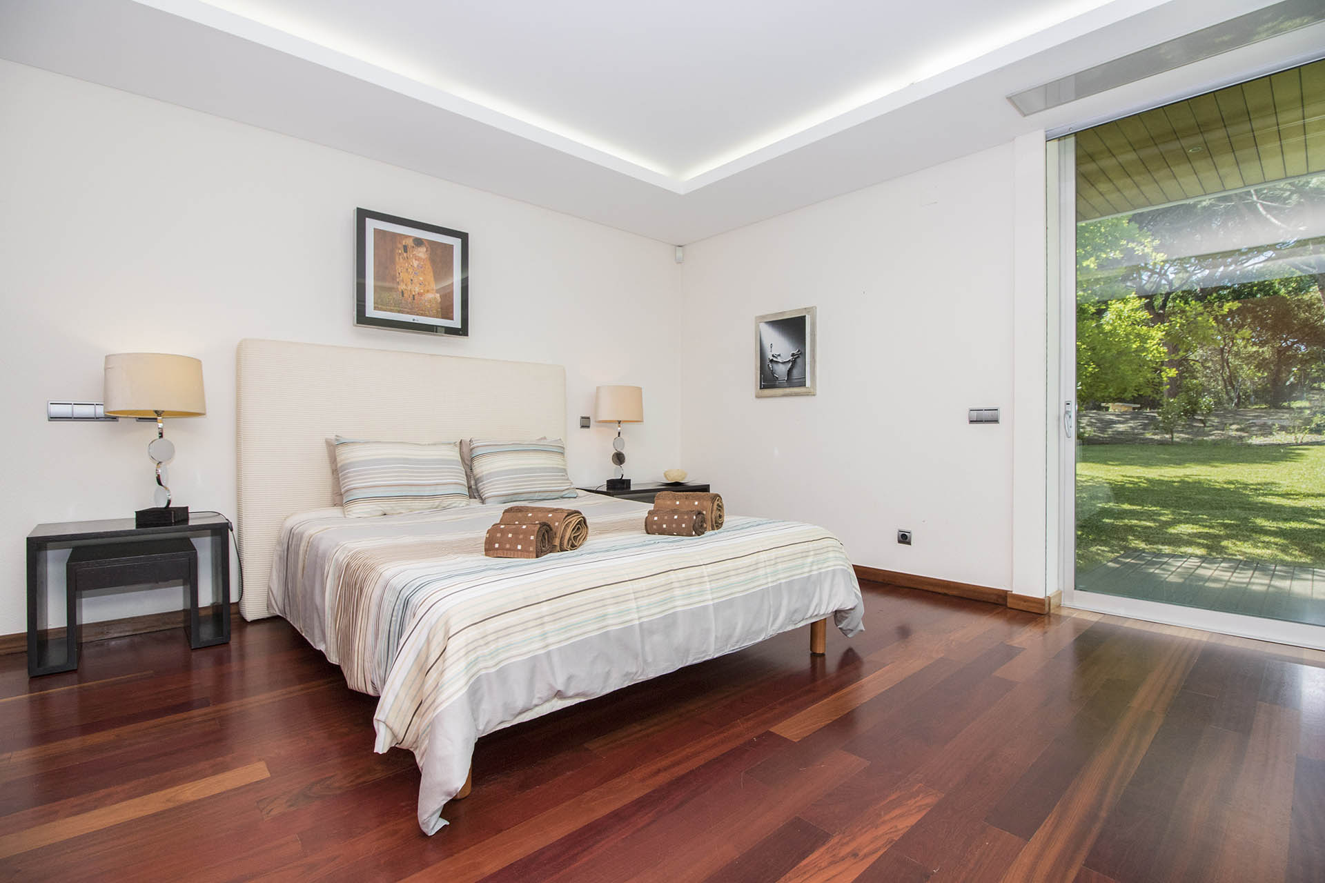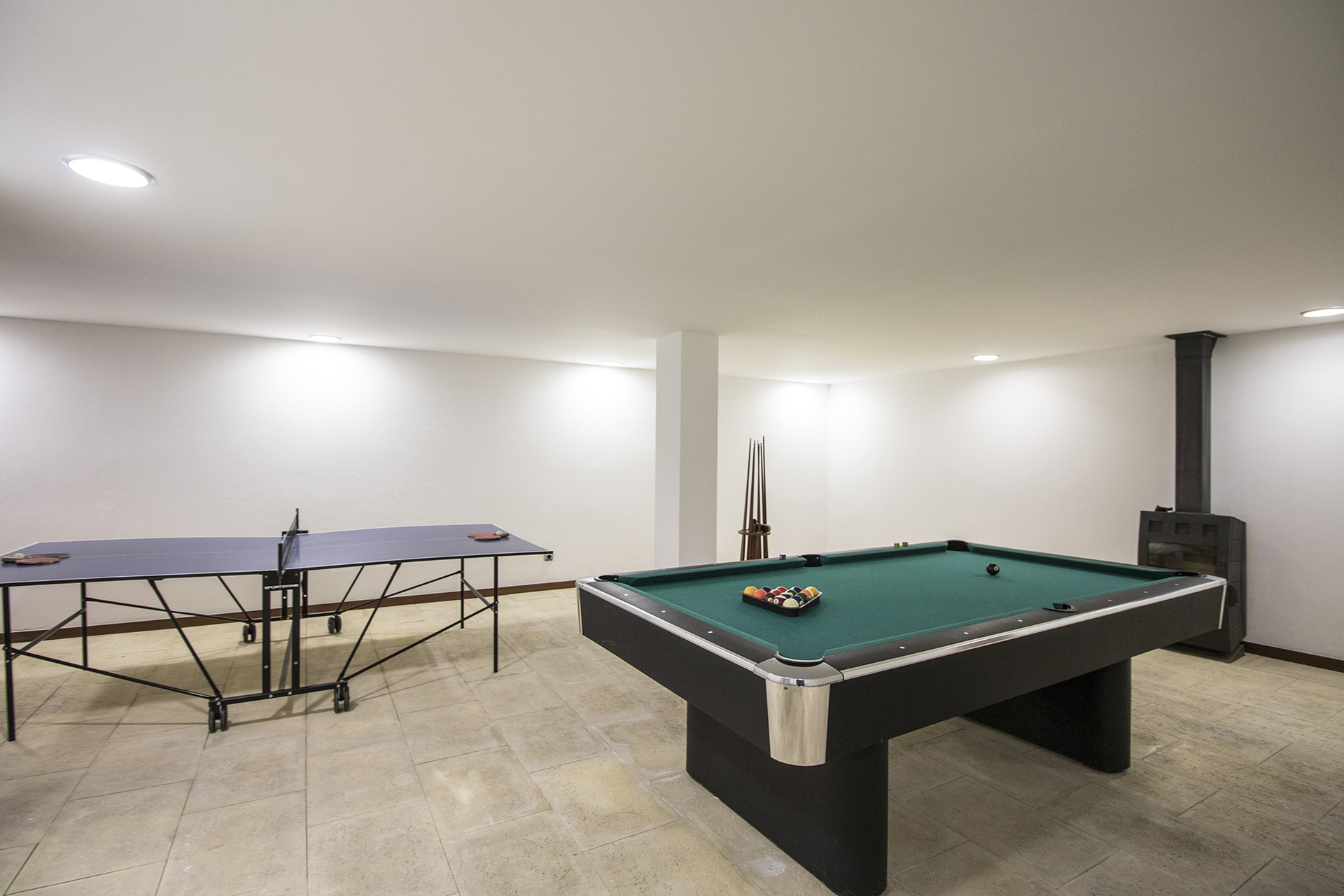 This large villa is completely private, has parking space with automatic gate, a swimming pool and private garden and is fenced all around offering total privacy to its visitors. It offers a very nice outdoor space with barbecue, recreation area and even a games room with pool table and table tennis table.
