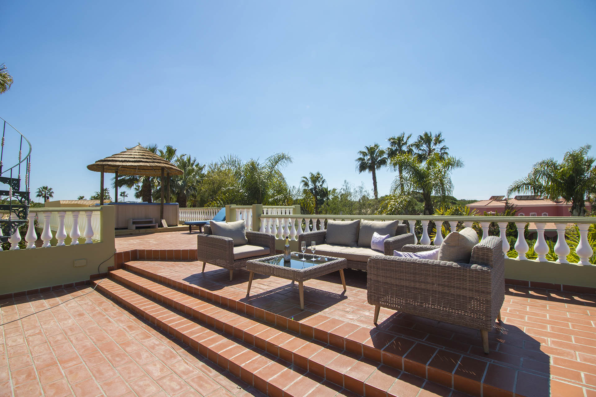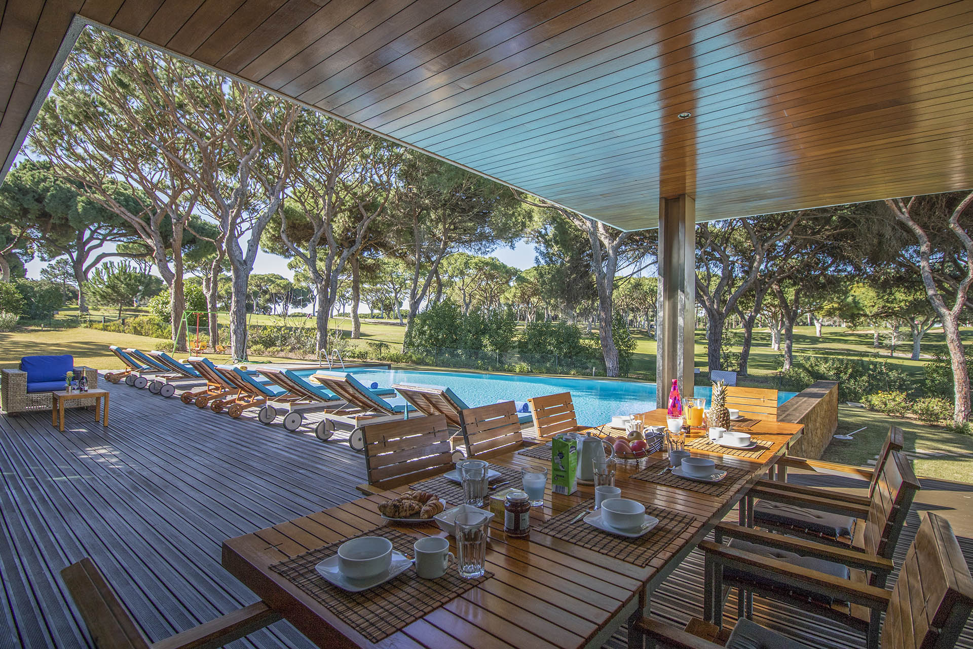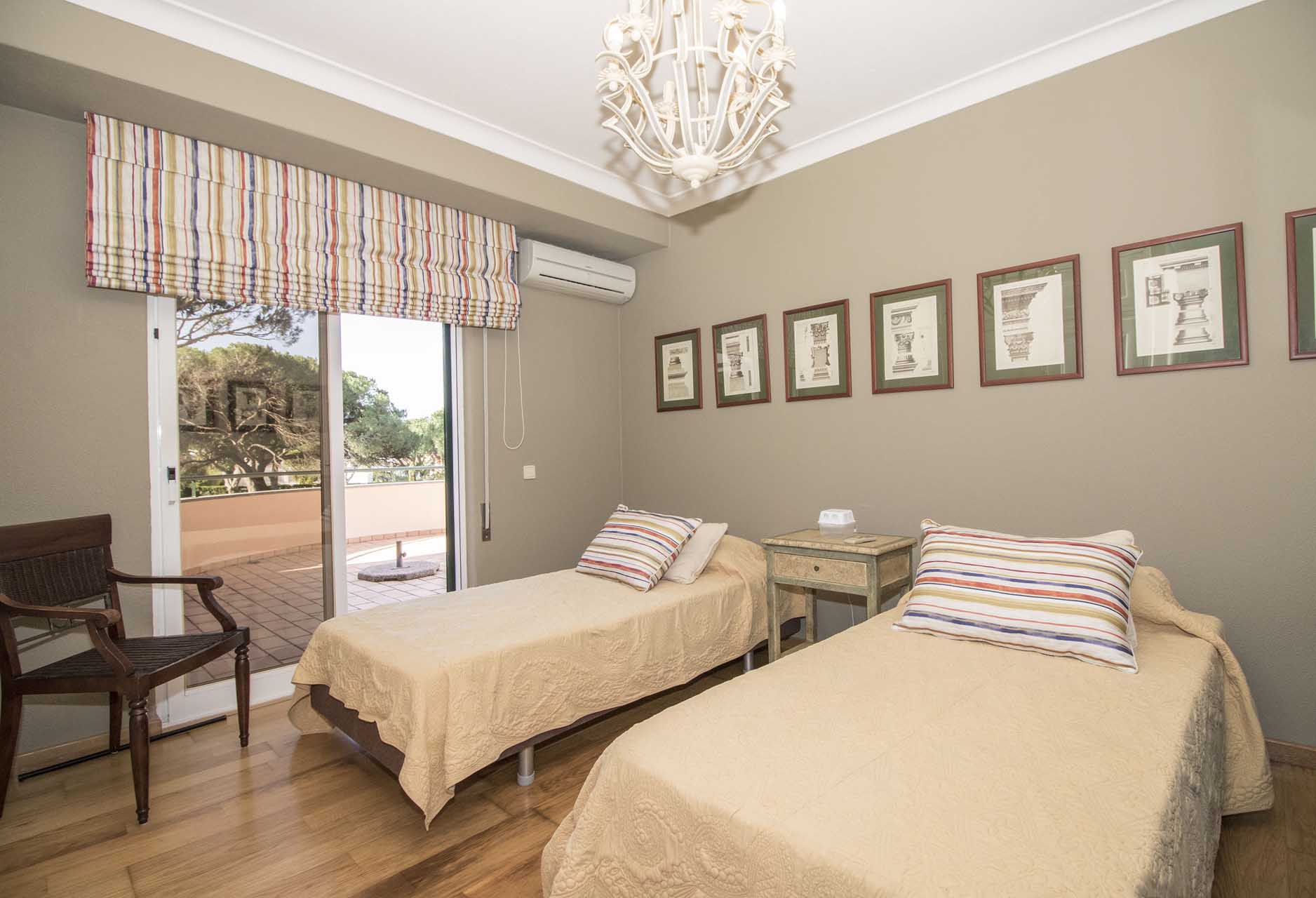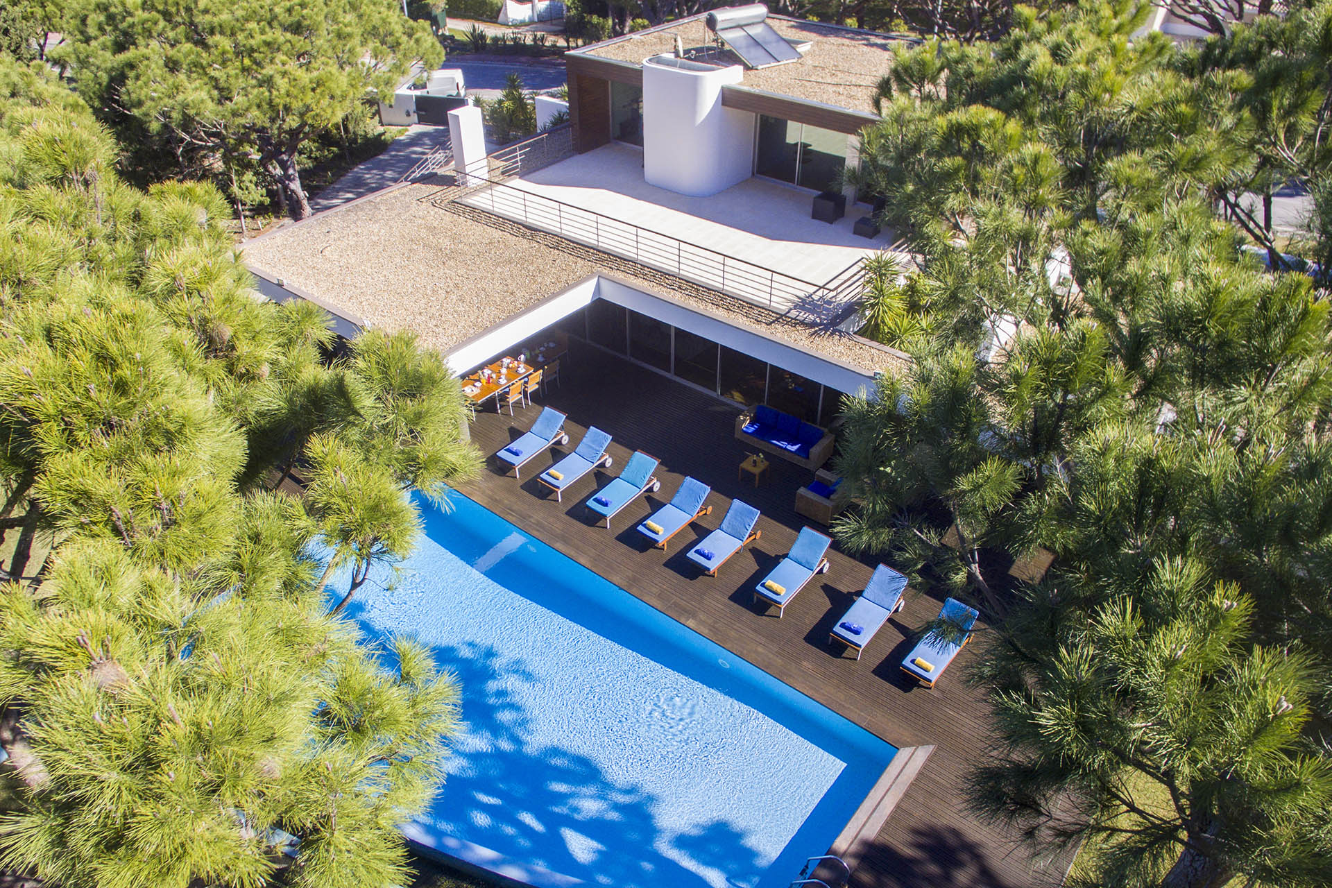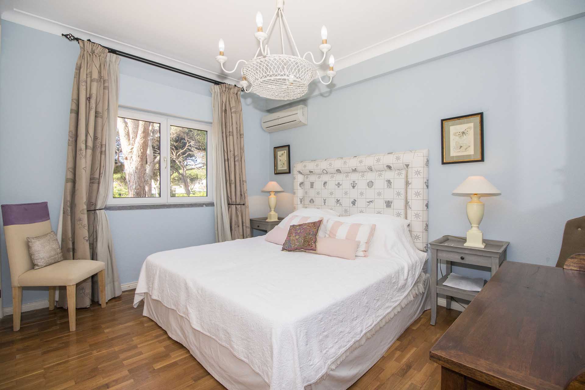 Private villa with 6 bedrooms and 7 bathrooms, located in a quiet cul-de-sac with no passing cars. This villa is just in front of the Pinhal Golf Course, has a refreshing swimming pool and a good-sized garden. It has a lovely outdoor area, in particular the barbecue and outdoor dining areas.