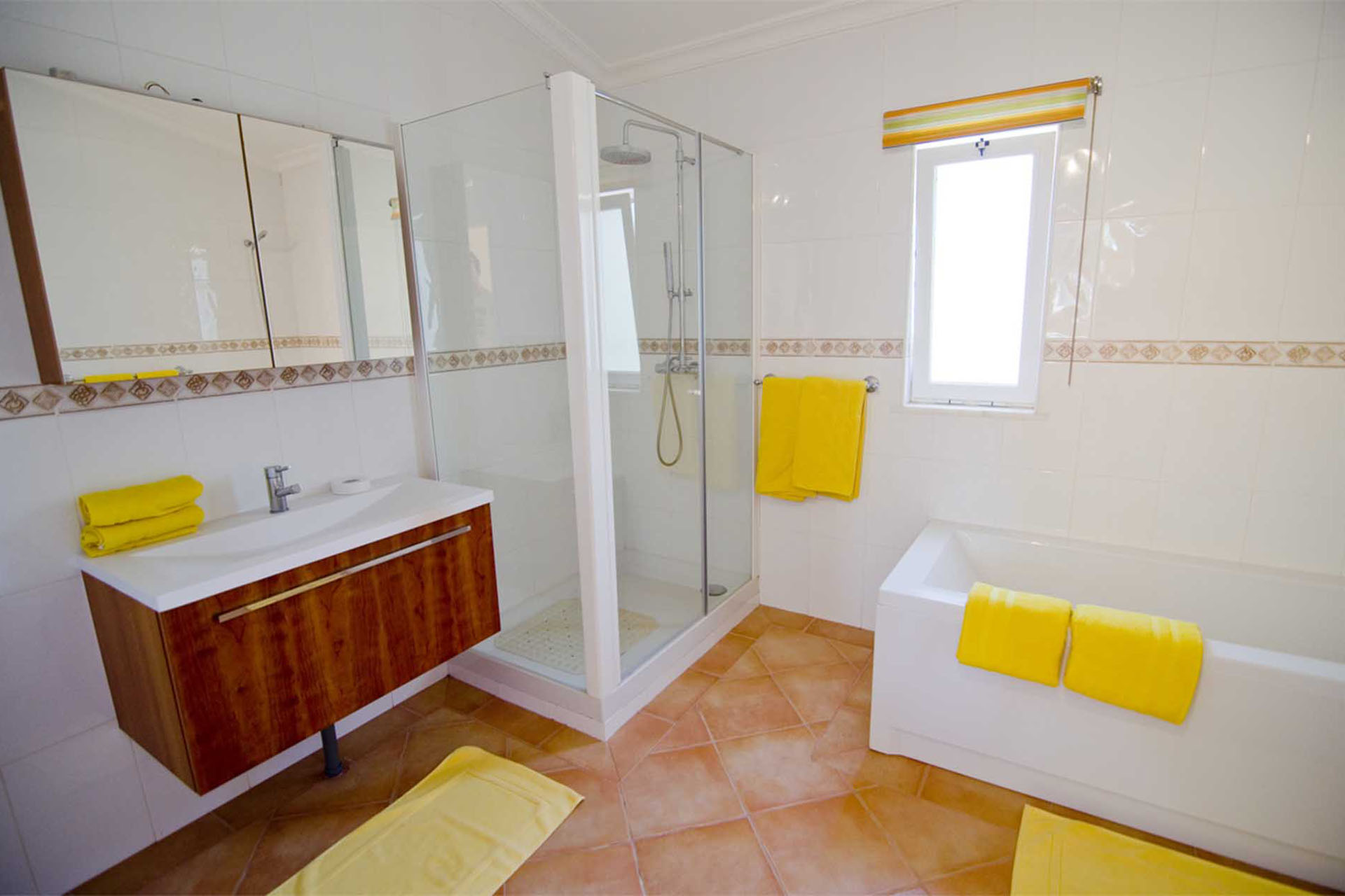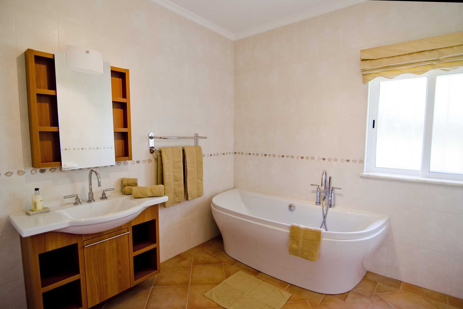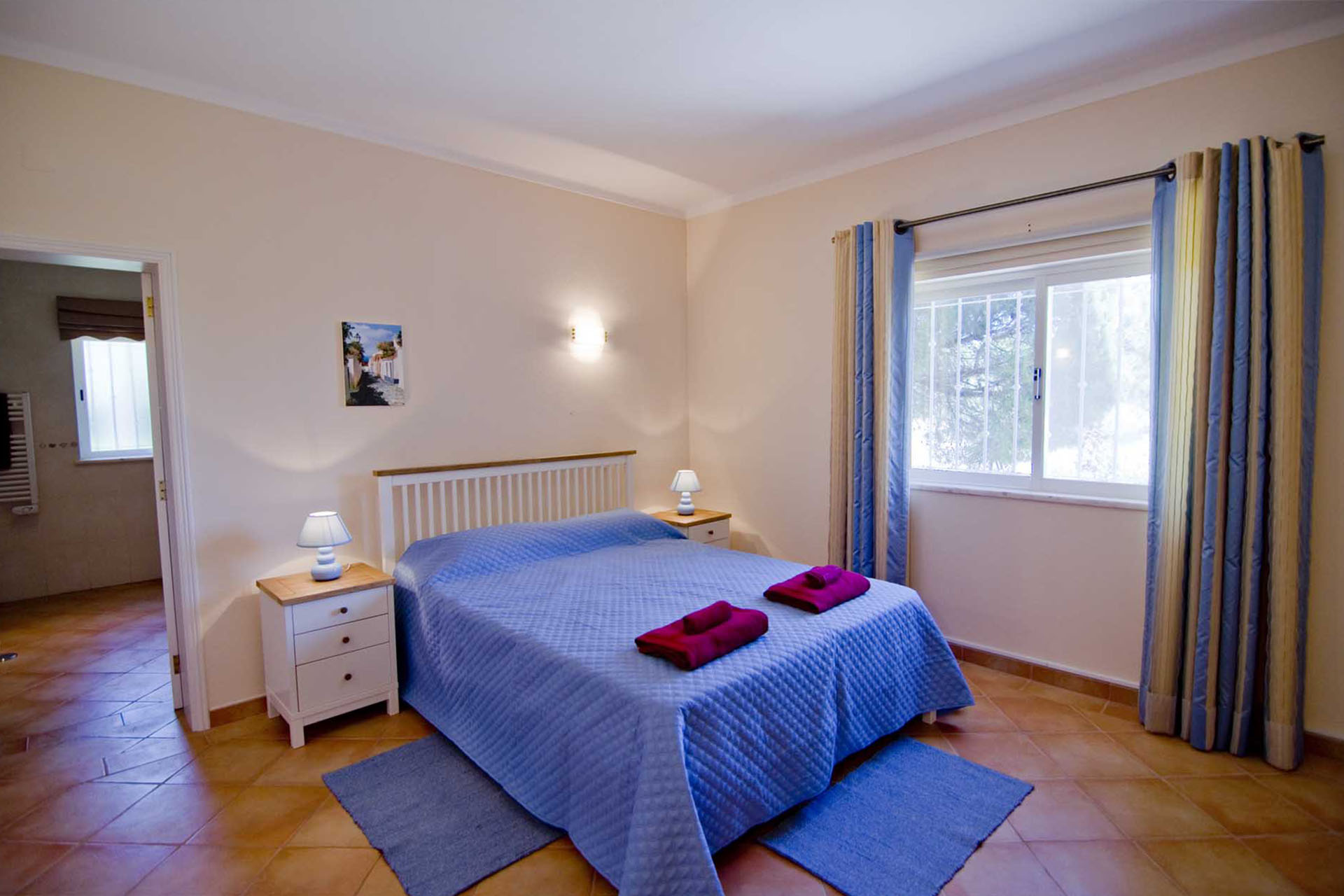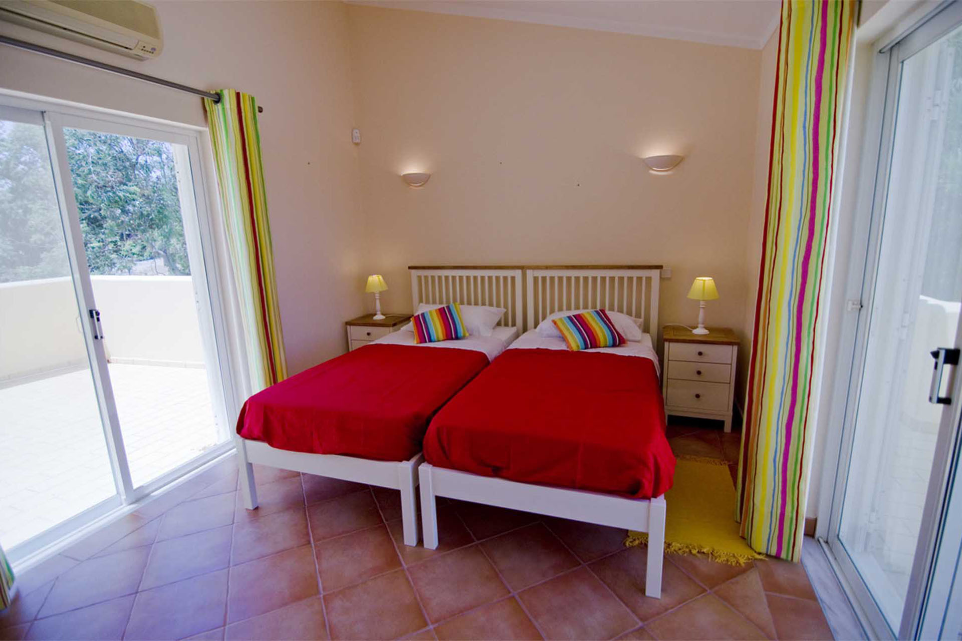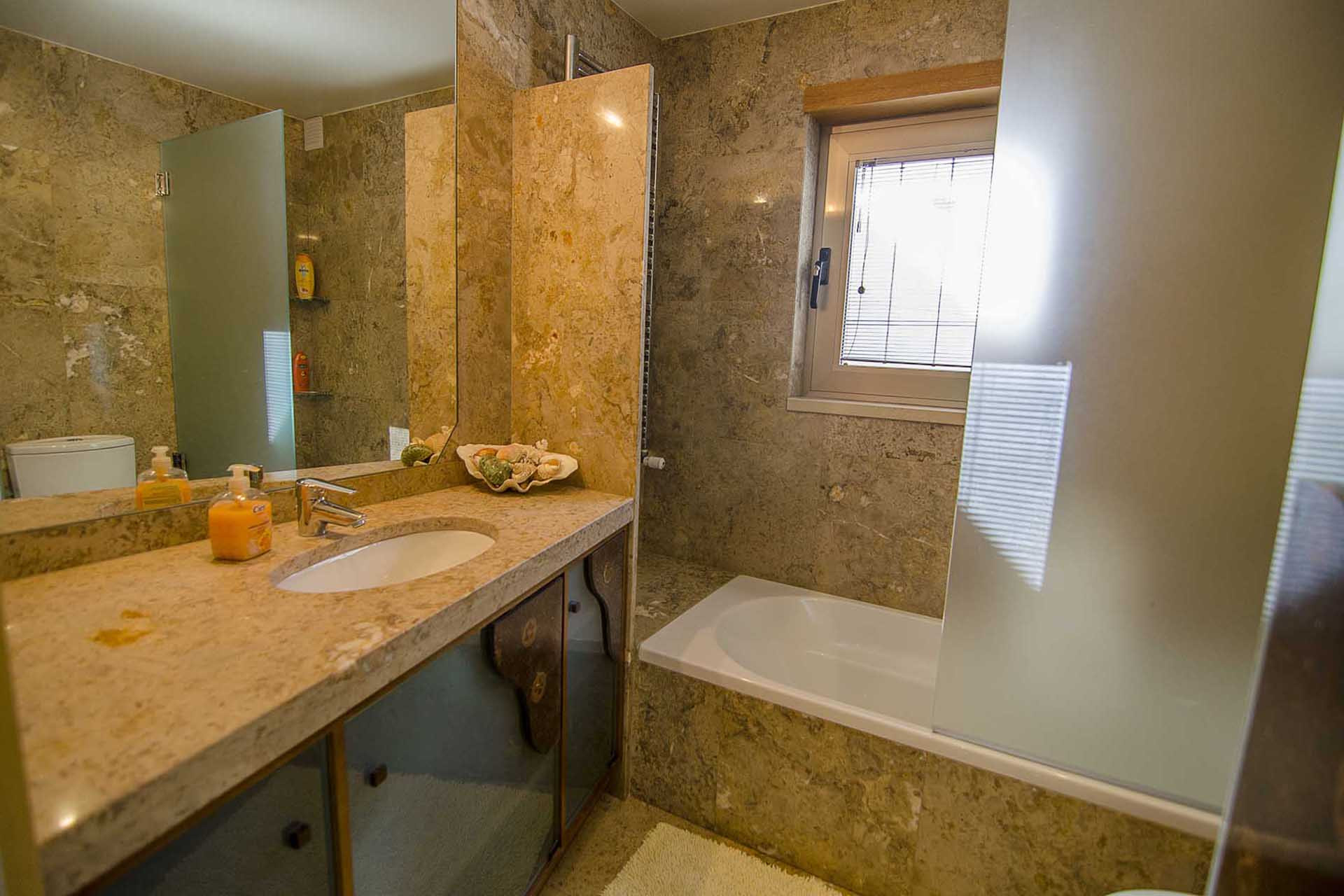 This villa is modern, spacious and well appointed. It sleeps 10 persons in comfort with it’s 5 en-suite bedrooms. It has free broadband Wi-Fi, TV with British and Portuguese channels, air conditioning throughout and lots of room for children and grown ups. 800 meters from the beach.