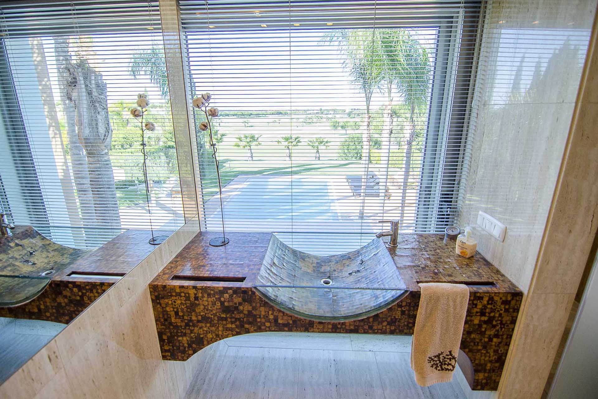 This architectural award-winning villa is composed of 5 bedrooms and 6 bathrooms. A spacious living room and fantastic golf front outdoors as it overlooks the 3rd fairway of the old course. Ideal for families or groups who enjoy golf and the contact with nature.