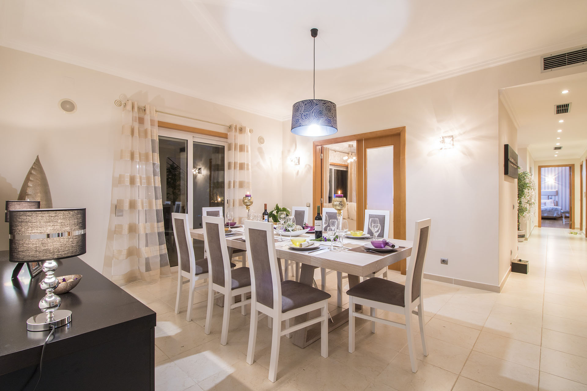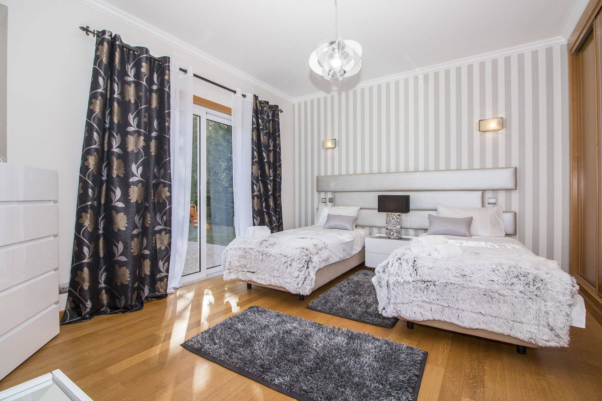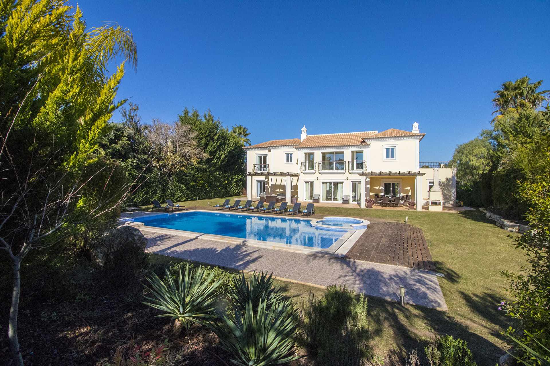 This villa is modern, spacious and well appointed. It sleeps 10 persons in comfort with it’s 5 en-suite bedrooms. It has free broadband Wi-Fi, TV with British and Portuguese channels, air conditioning throughout and lots of room for children and grown ups. 800 meters from the beach.