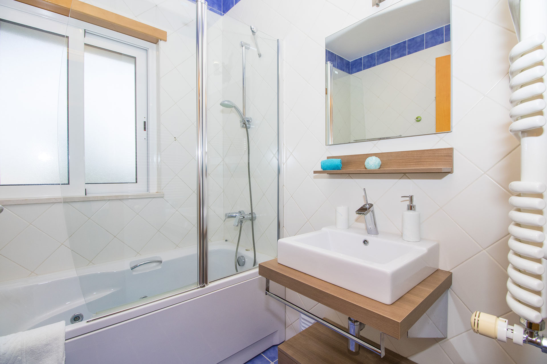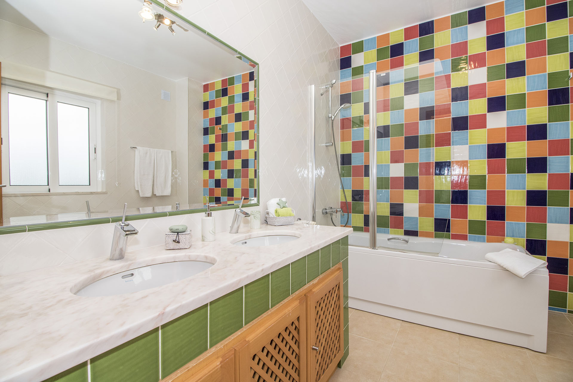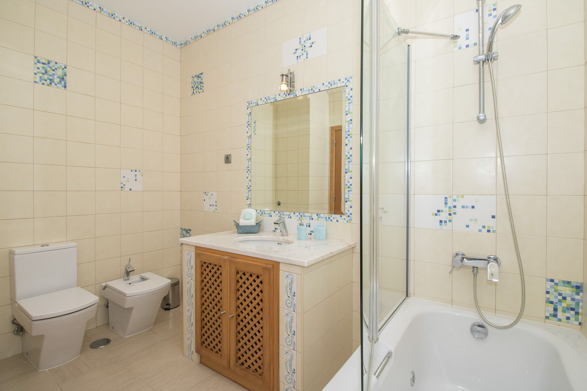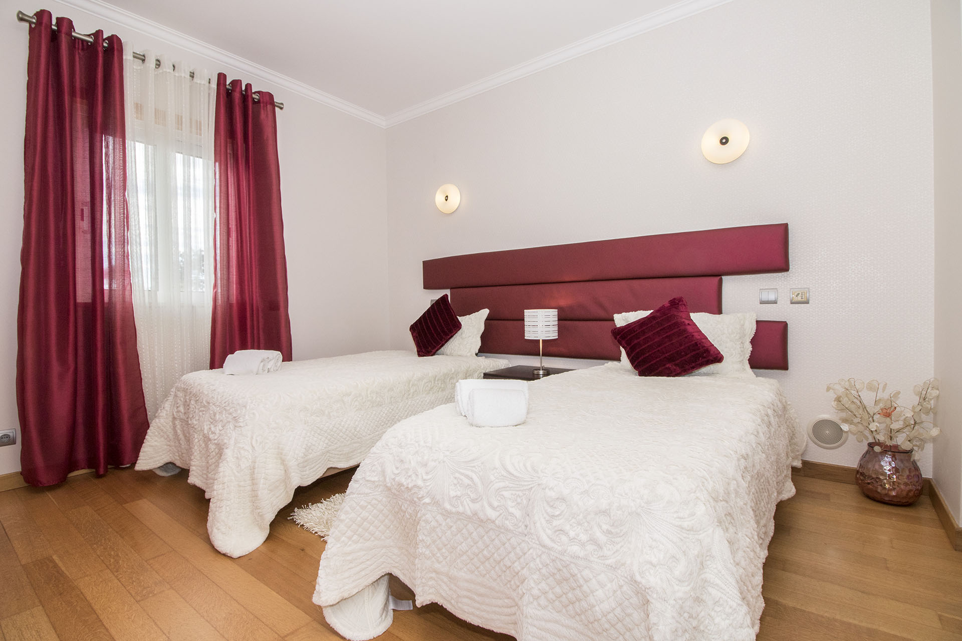 This villa is modern, spacious and well appointed. It sleeps 10 persons in comfort with it’s 5 en-suite bedrooms. It has free broadband Wi-Fi, TV with British and Portuguese channels, air conditioning throughout and lots of room for children and grown ups. 800 meters from the beach.
